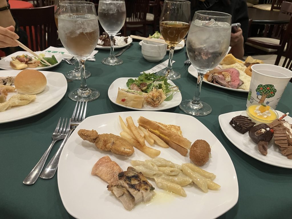 ステージ合間にお客さんに混じり夕食をいただきました。豪華〜。